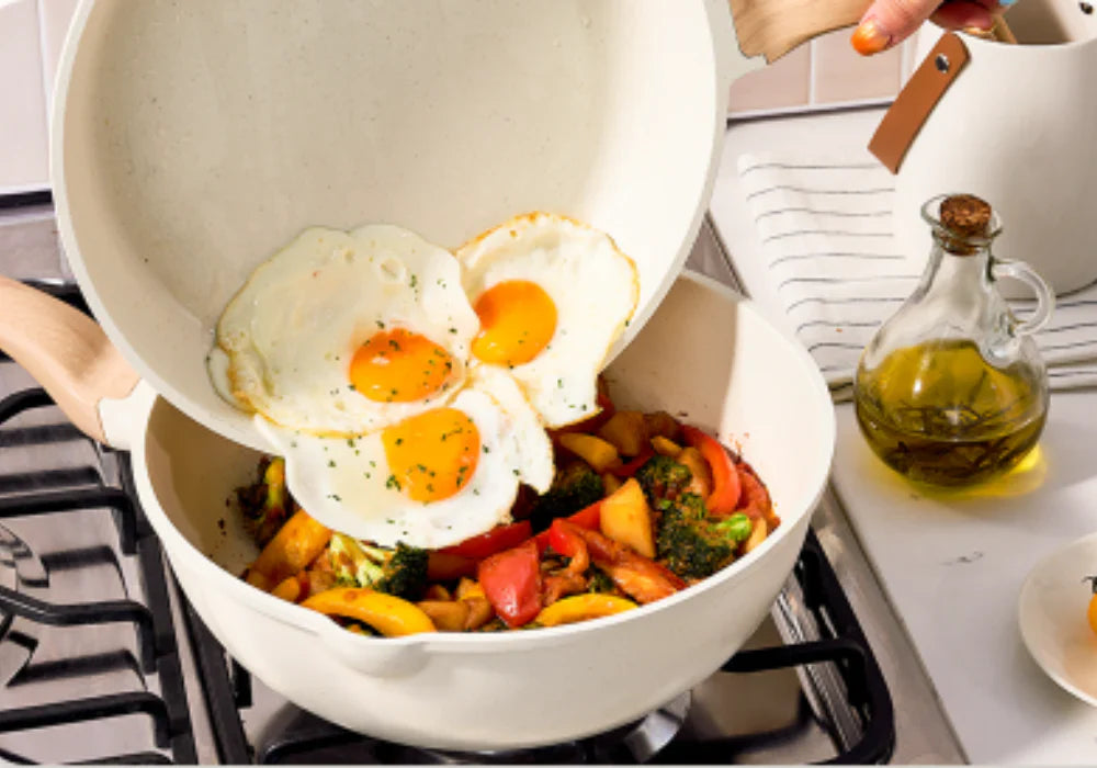 Ik probeer minder olie te gebruiken, en deze pannen maken dat super makkelijk. Eieren, groenten, zelfs vis komen perfect uit de pan zonder een druppel boter.